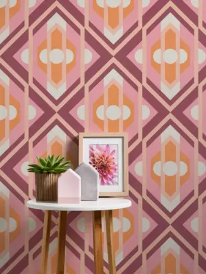 Die Vinyltapete 395311 von A.S. Création setzt mit ihrer originellen Grafik in Orange, Rosa, Weiß, Violett und Creme ausdrucksstarke Akzente an jeder Wand. Das moderne Design im Grafik-Stil verleiht Wohn- und Arbeitsbereichen wie Wohnzimmer, Schlafzimmer, Küche oder Büro eine lebendige und kreative Atmosphäre.