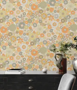 Die Vinyltapete 395353 von A.S. Création kombiniert florale Eleganz mit moderner Farbgebung. Ihr Design in Orange, Grün, Weiß und Beige bringt frischen Schwung und natürliche Harmonie in jeden Wohnraum. Das dezente Blumenmuster sorgt für eine lebendige Atmosphäre, während die leicht strukturierte, matte Oberfläche ein angenehmes Raumgefühl schafft.