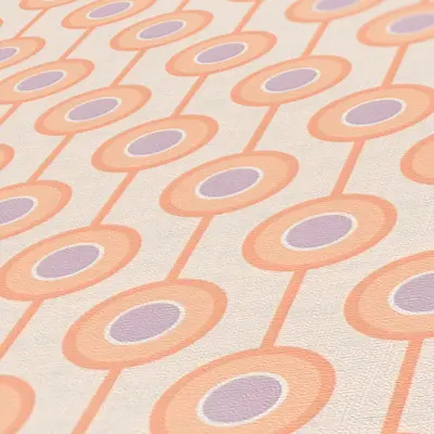 Die Vinyltapete 395375 von A.S. Création kombiniert ein modernes grafisches Design mit angesagten Farbtönen in Beige, Orange, Violett und Rosa. Diese Tapete überzeugt durch ihre matte, leicht strukturierte Oberfläche und sorgt für einen stilvollen Blickfang an jeder Wand. Dank ihres Trägermaterials aus Vlies ist die Tapete äußerst pflegeleicht, hoch waschbeständig und lässt sich restlos trocken abziehen.