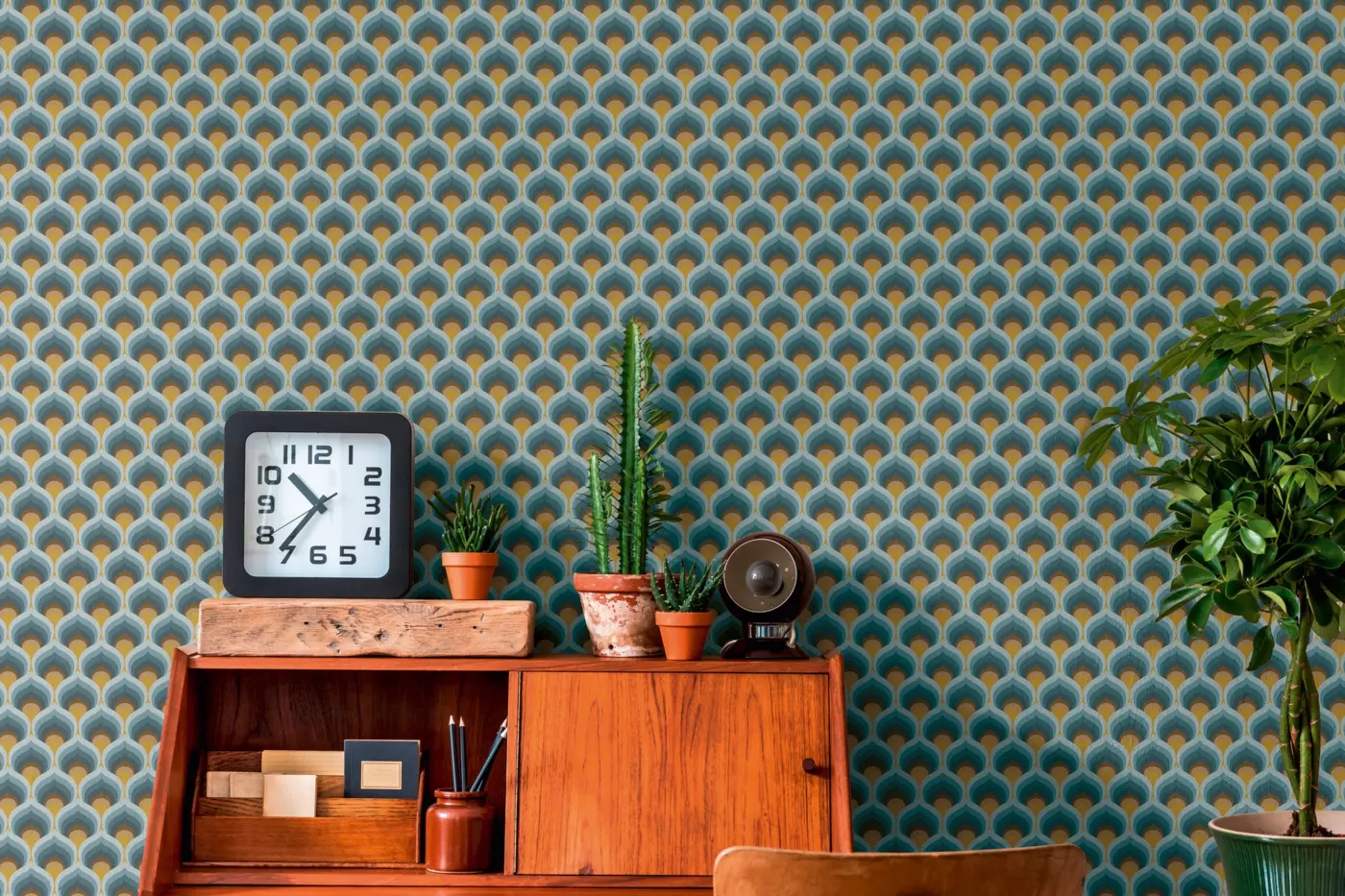 Verleihen Sie Ihren Räumen eine moderne und elegante Atmosphäre mit der Vinyltapete 395383 von A.S. Création. Das faszinierende grafische Design in Blau, Braun, Gelb und Creme setzt stilvolle Akzente und sorgt für ein harmonisches Gesamtbild. Die matte Oberfläche und die leichte Struktur verleihen der Tapete eine besondere Haptik und einen hochwertigen Look.