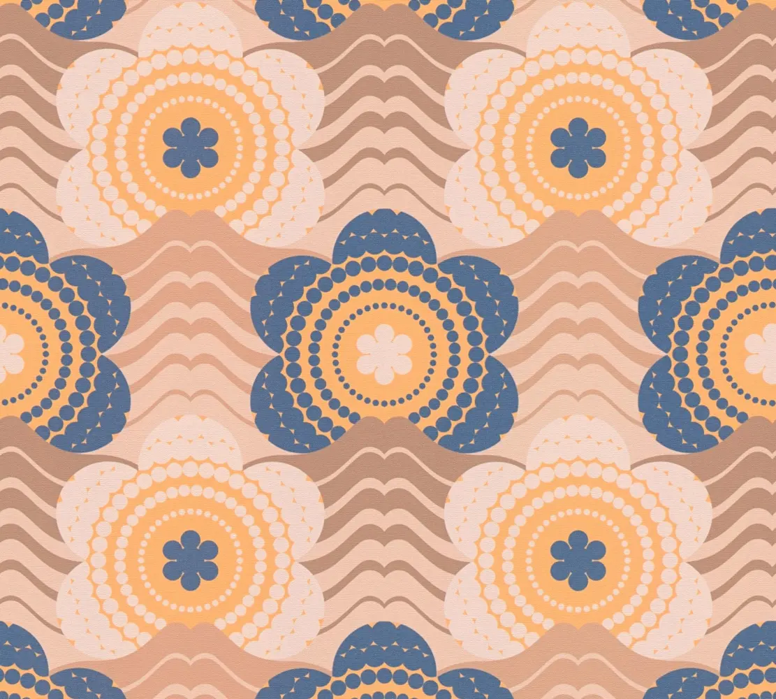 Die A.S. Création Vinyltapete 395392 überzeugt durch ihr stilvolles florales Muster und eine harmonische Farbkombination aus Beige, Braun, Blau, Gelb und Orange. Die matte, leicht strukturierte Oberfläche verleiht jedem Raum eine elegante und moderne Atmosphäre.