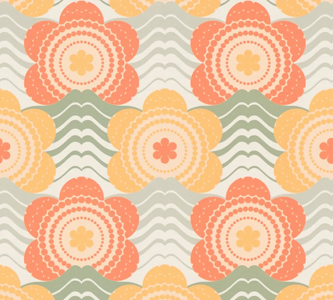Verleihen Sie Ihren Räumen mit der Vinyltapete 395394 von A.S. Création ein frisches und einladendes Ambiente. Das florale Design kombiniert harmonisch die Farben Orange, Gelb, Grün und Creme und setzt stilvolle Akzente an Ihren Wänden. Die matte Oberfläche und die leichte Struktur sorgen für ein angenehmes Raumgefühl.