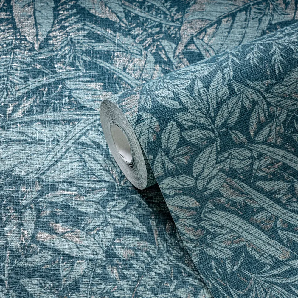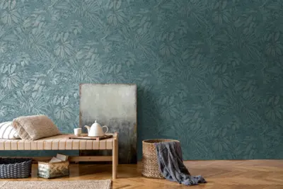 Livingwalls Vinyltapete 395603 – Stilvolles florales Design in Blau und Petrol