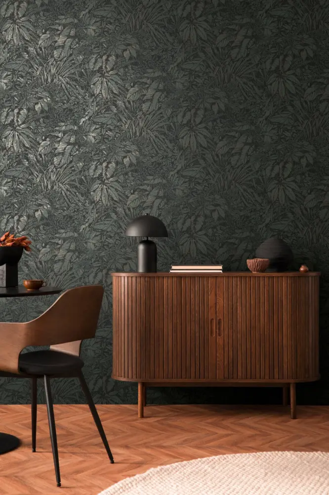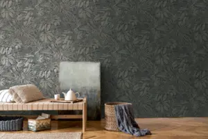 Verleihen Sie Ihren Räumen mit der Livingwalls Vinyltapete 395604 von A.S. Création einen stilvollen und natürlichen Akzent. Das harmonische Zusammenspiel aus Grün, Schwarz und silbernen Farbakzenten bringt florale Eleganz an Ihre Wände und schafft eine einladende Atmosphäre.