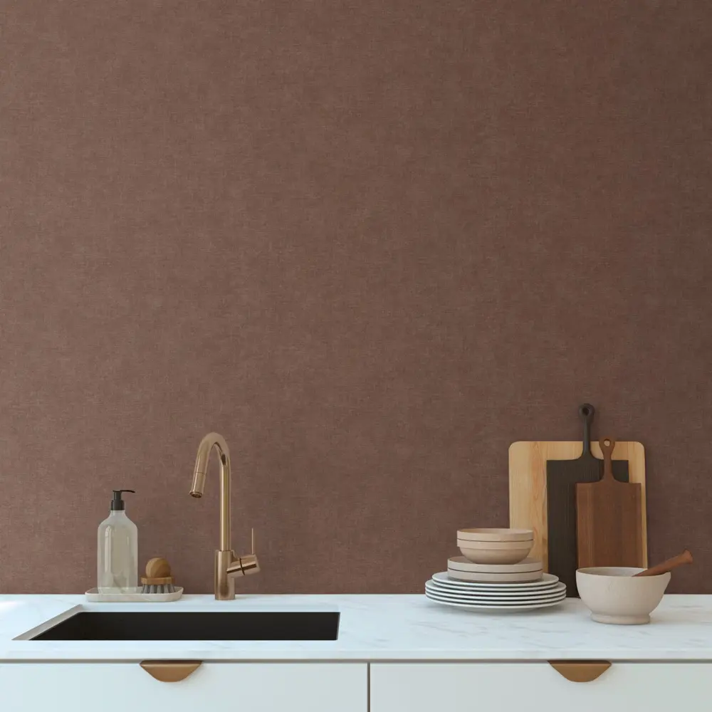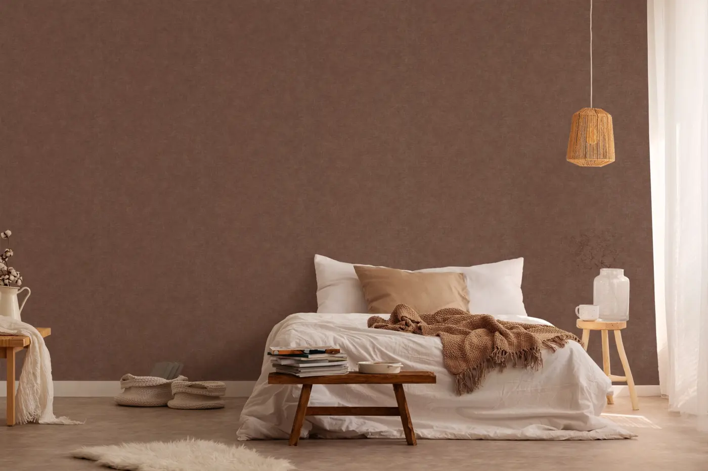 Die Vinyltapete 395671 von A.S. Création überzeugt durch ihre moderne, unifarbene Gestaltung in einer stilvollen Braun-Rot-Kombination. Mit ihrer matten, leicht strukturierten Oberfläche verleiht sie jedem Raum eine edle und behagliche Atmosphäre.