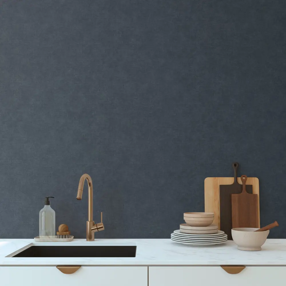 Die Livingwalls Vinyltapete 395672 von A.S. Création überzeugt durch ihre moderne, unifarbene Optik in edlem Dunkelblau. Sie eignet sich gleichermaßen für Wohnzimmer, Schlafzimmer, Küche, Büro und Badezimmer und schafft überall ein elegantes und harmonisches Ambiente.