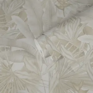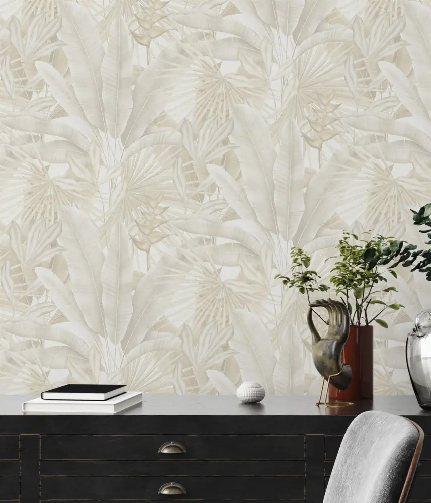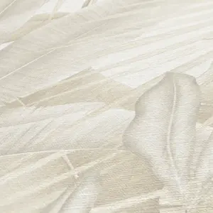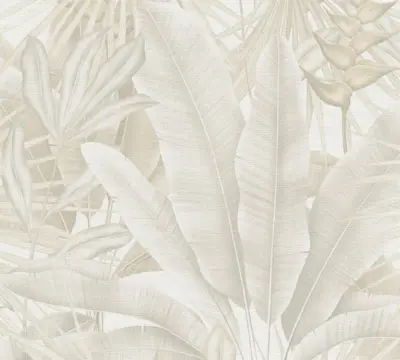 Die Livingwalls Vinyltapete 396474 von A.S. Création kombiniert ein modernes Design in den Farben Beige, Creme, Grau und Weiß mit einer dezenten, matt strukturierten Oberfläche. Das Dschungel-Motiv setzt elegante Akzente und verleiht jedem Raum ein lebendiges, natürliches Flair – perfekt für Wohn-, Schlaf-, Badezimmer, Küche oder Büro.