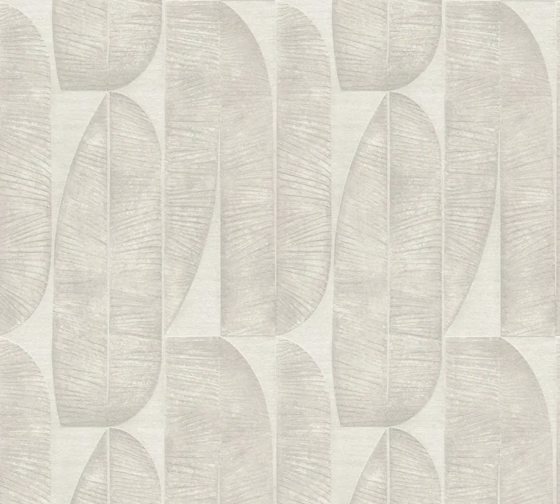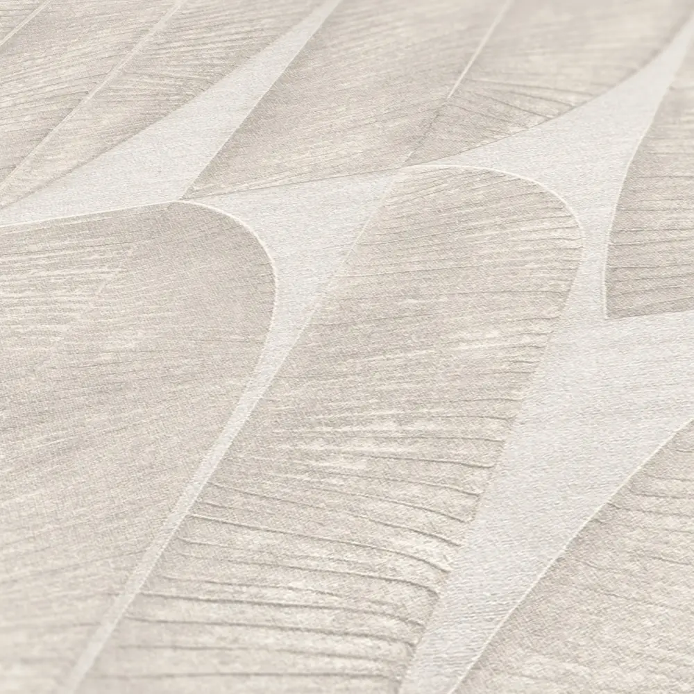 Die Vliestapete 396581 von A.S. Création vereint modernes Design mit einer hochwertigen Verarbeitung. Das dezente Bananenblatt-Motiv in Grau und Beige bringt einen eleganten Palmenstil in jeden Raum und sorgt für eine entspannte, natürliche Atmosphäre.
