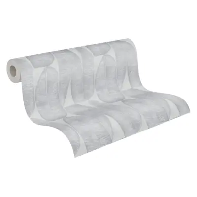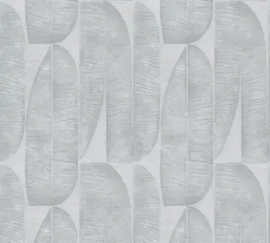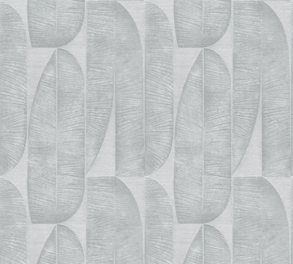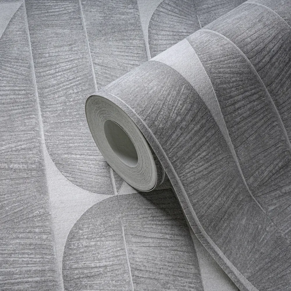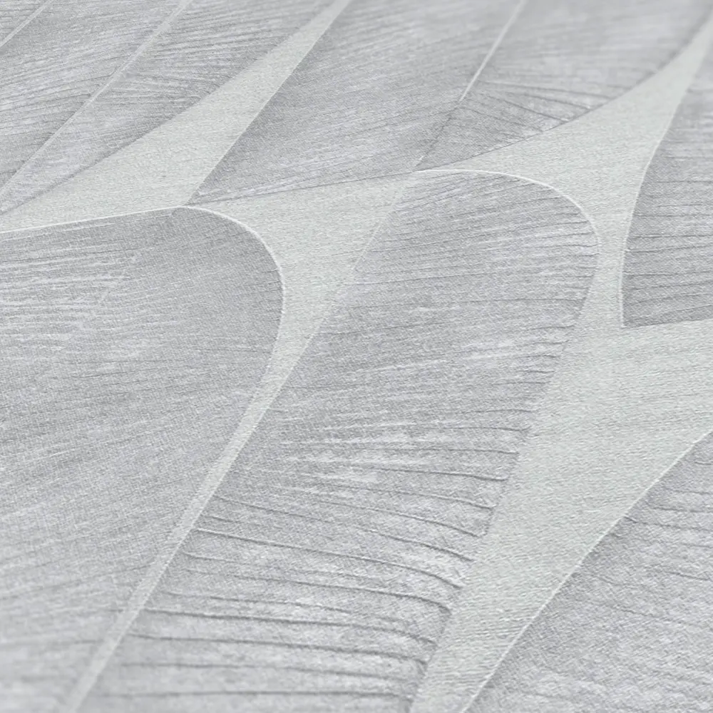 Moderne Vliestapete Livingwalls 396582 in Grau mit Bananenblatt-Design
