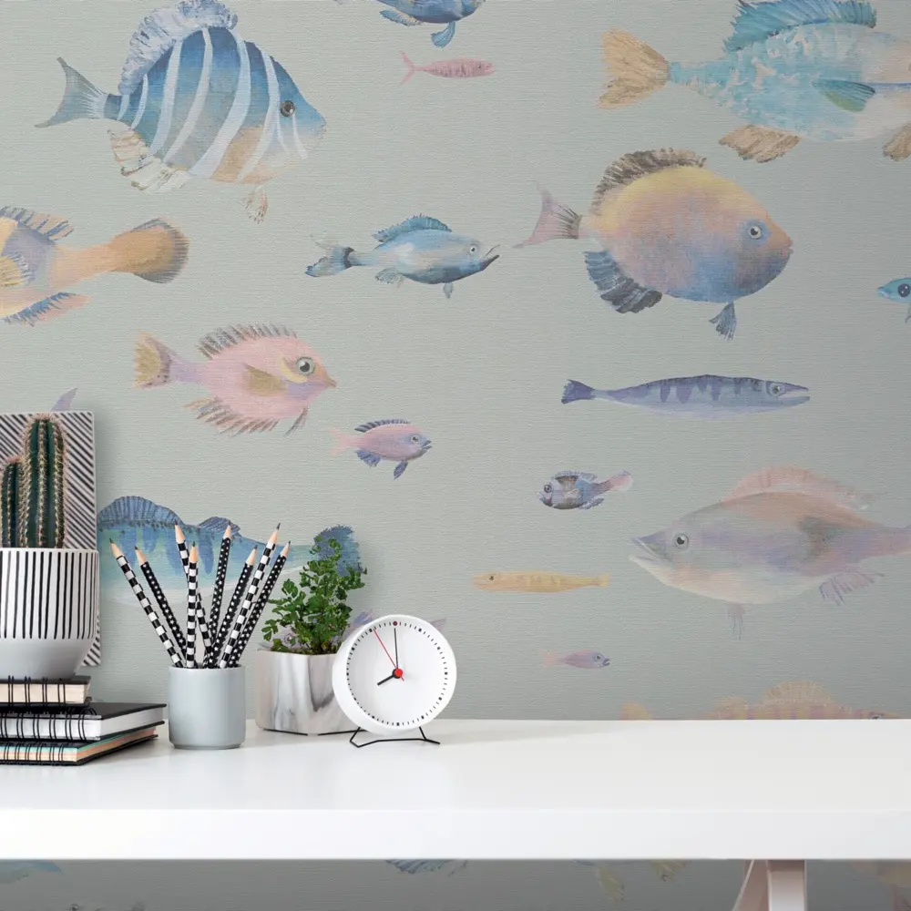 A.S. Création Vinyltapete 396964 – Grau Bunt Fische