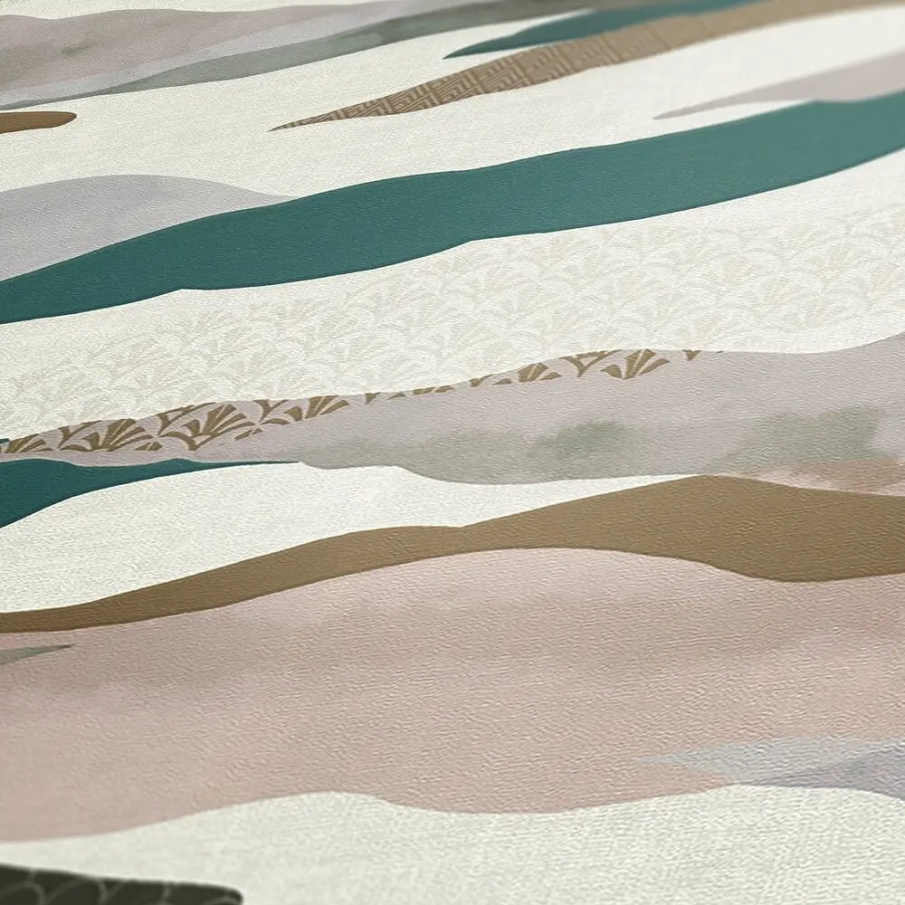 Mit einer Breite von 53 cm und einer Länge von 10,05 m ist sie vielseitig einsetzbar. Das versetzte Rapportmaß von 64/32 cm unterstreicht den grafischen Look und sorgt für ein harmonisches Gesamtbild an der Wand.