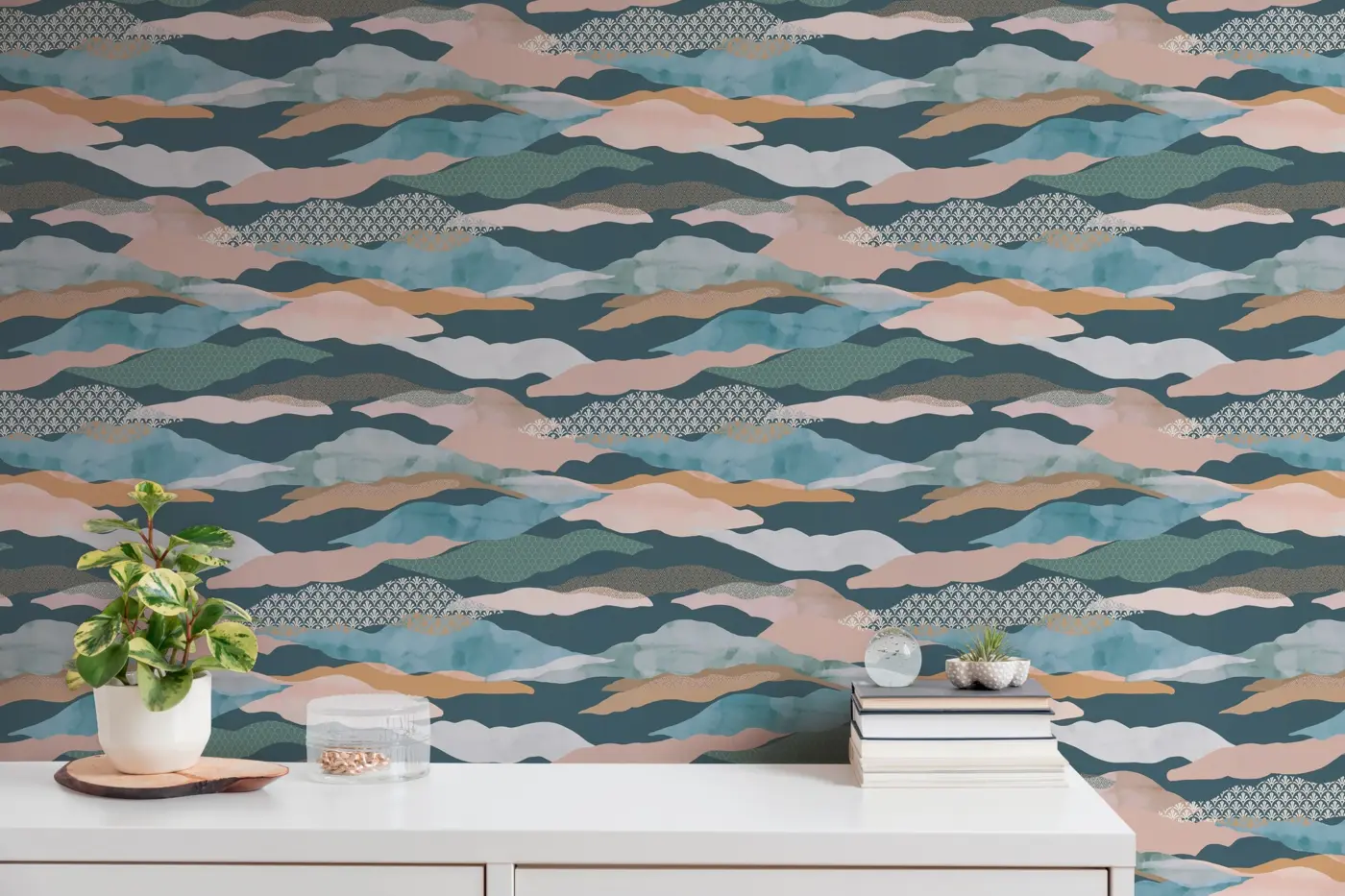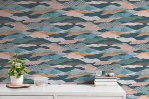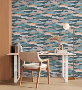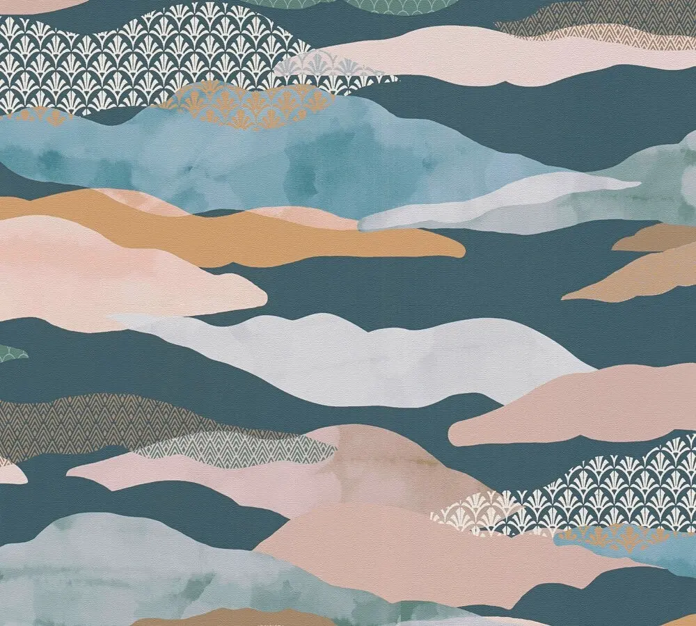 Verleihen Sie Ihren Räumen einen modernen und grafischen Akzent mit der Vinyltapete 396994 von A.S. Création. Das Design kombiniert Blautöne, Grün, Rosa und Braun zu einer harmonischen Farbpalette und unterstreicht durch grafische Muster einen zeitgemäßen Einrichtungsstil. Die matte Oberfläche sowie die leicht strukturierte Haptik sorgen für ein elegantes und hochwertiges Erscheinungsbild an Wand und Decke.