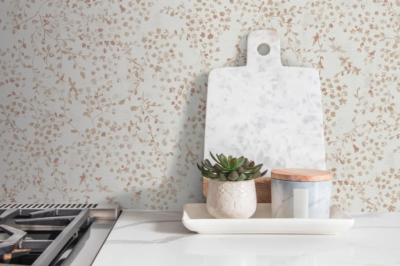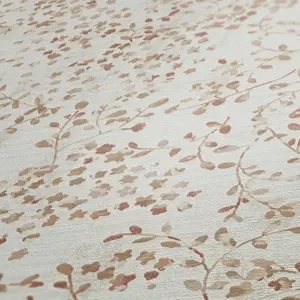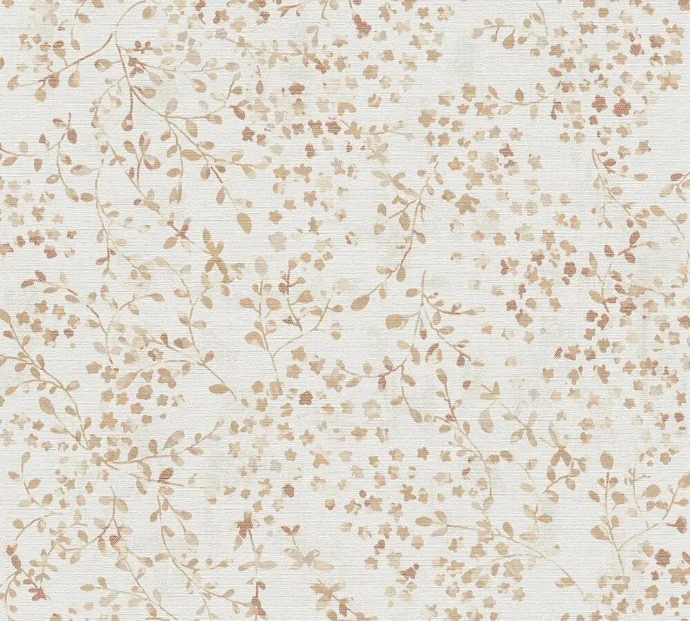 Die Kombination aus edlen Farben wie Creme, Beige, Braun und Akzenten in Gold macht die Tapete zu einem zeitlosen Blickfang im beliebten Blumenstil und bietet zahlreiche Möglichkeiten zur individuellen Raumgestaltung.
