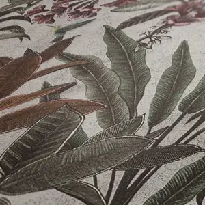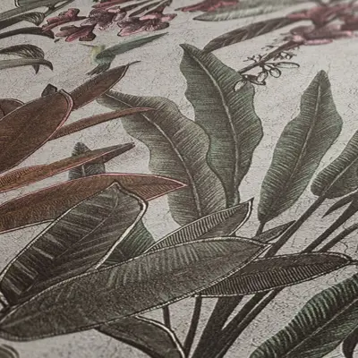 Verleihen Sie Ihren Räumen einen Hauch von Exotik mit der Vinyltapete 397484 von A.S. Création. Das moderne Dschungel-Design in Grün, Creme, Rosa und Gelb schafft ein frisches, natürliches Ambiente und setzt lebendige Akzente an Wand und Decke. Die matt strukturierte Oberfläche aus hochwertigem Satin sorgt für eine elegante Optik und ein angenehmes Raumgefühl.