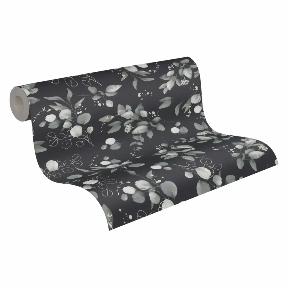 Elegante Vliestapete 397685 von A.S. Création – Schwarz-Grau mit floralem Design