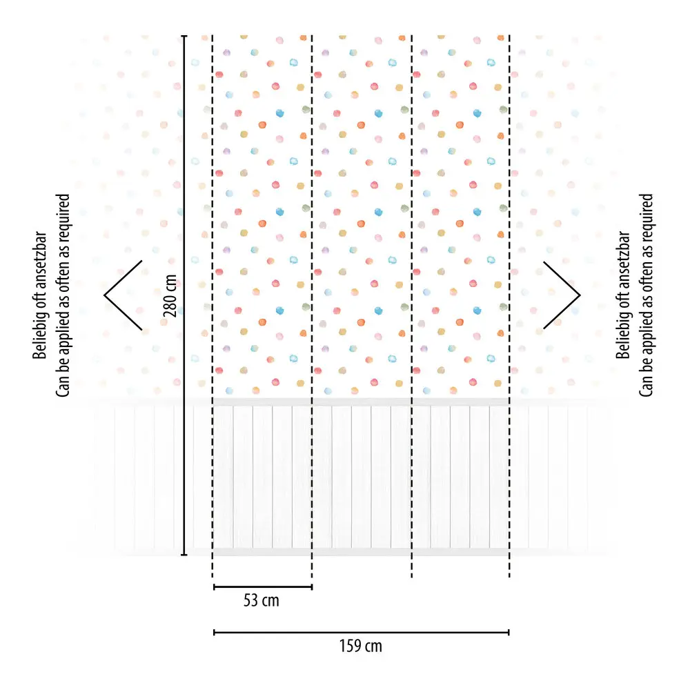 Die Livingwalls Vinyltapete 398141 in modernem Grau mit farbenfrohen Akzenten überzeugt durch ihr kreatives Design, das an Wandpaneele erinnert. Dank ihrer Maße von 2,80 m x 1,59 m eignet sie sich ideal für vielfältige Gestaltungsprojekte in unterschiedlichen Räumen – ob Wohnzimmer, Schlafzimmer, Büro, Küche, Kinderzimmer oder Badezimmer.