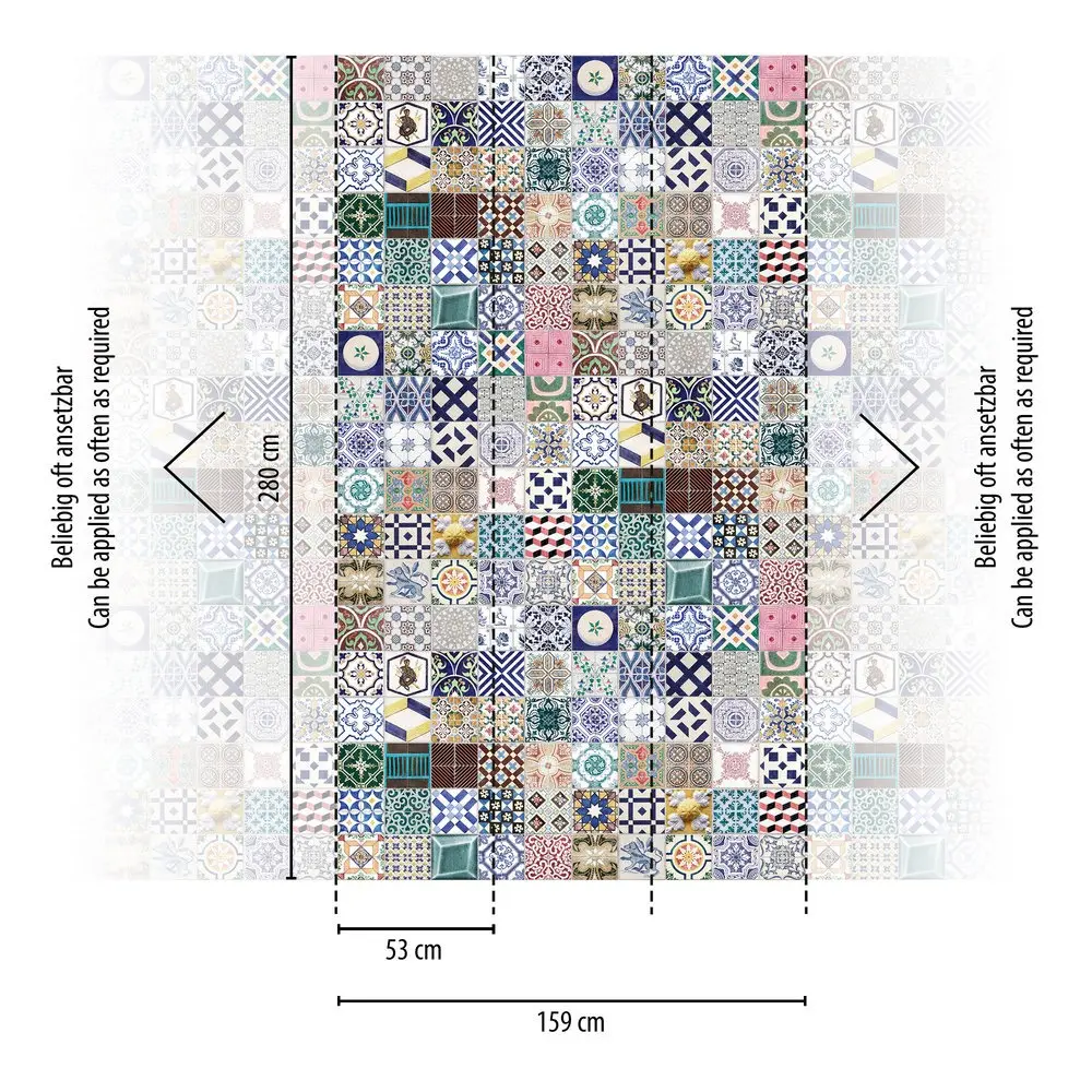 Livingwalls Vinyltapete 398361 – Bunte Vintage-Fliesen für stilvolles Ambiente