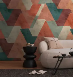 Livingwalls Vinyltapete 398371 – Modernes Grafikdesign in Orange, Grün, Petrol und Rot