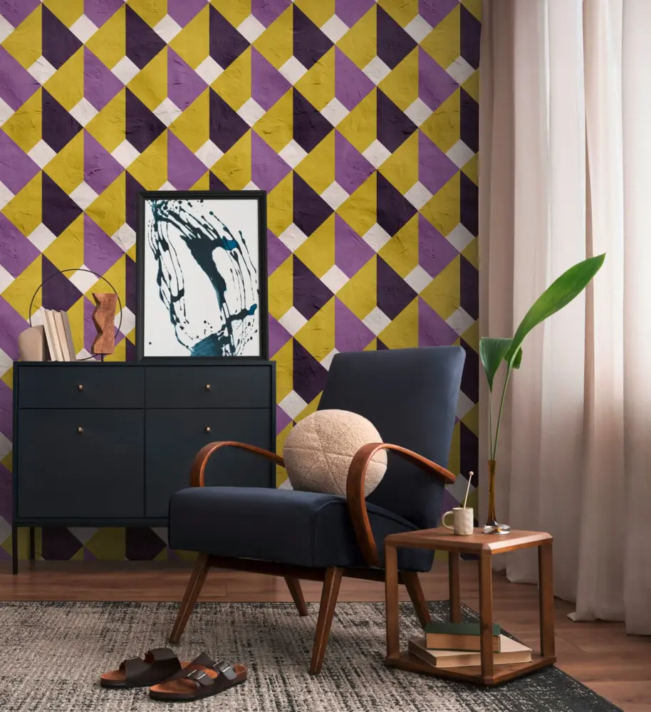 Die Vinyltapete Livingwalls 398491 von A.S. Création verbindet ein stilvolles Grafikdesign in den Farben Violett, Gelb und Weiß mit hochwertigen Materialeigenschaften und moderner Optik. Diese Tapete eignet sich ideal für vielfältige Einsatzbereiche wie Wohnzimmer, Schlafzimmer, Küche, Büro oder Badezimmer und setzt mit ihrer modernen Grafik einen besonderen Akzent in jedem Raum.