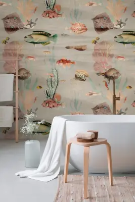 Die A.S. Création Vinyltapete 398711 bringt mit ihrem kreativen Fischmotiv stilvolle Akzente in jeden Raum. Die Tapete überzeugt durch ein buntes Farbspektrum aus Grau, Rosa und Grün auf matter Oberfläche und eignet sich sowohl für Wohn- als auch Arbeitsbereiche. Mit ihrem maßstabilen Trägermaterial aus Vlies lässt sie sich besonders einfach anbringen und bei Bedarf restlos trocken abziehen.