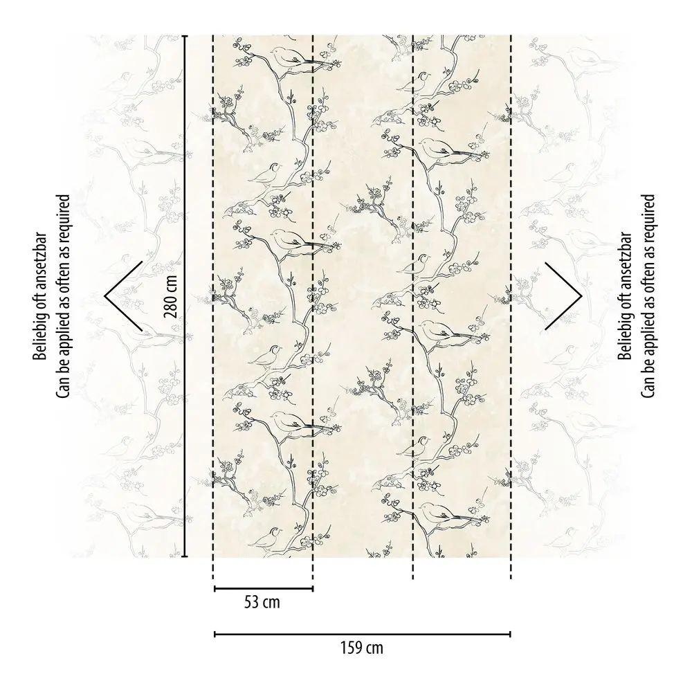 Die Vinyltapete Livingwalls 398841 von A.S. Création überzeugt durch ihr stilvolles creme-schwarzes Design mit künstlerischem Vogeldekor und passt perfekt in moderne Wohnkonzepte. Mit einer beeindruckenden Breite von 1,59 Metern und einer Gesamtlänge von 2,80 Metern bietet diese matte Tapete eine großzügige Fläche, die Ihre Wände eindrucksvoll in Szene setzt.