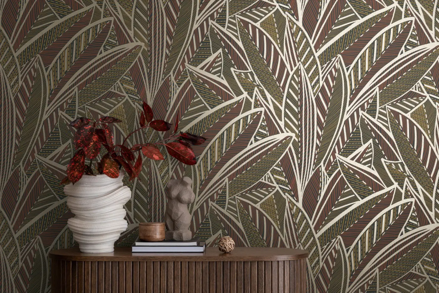 Die Vliestapete 399331 von A.S. Création setzt stilvolle Akzente an Ihren Wänden. Ihr florales Blättermotiv in Braun, Gelb, Rot und Schwarz schafft eine wohnliche und moderne Atmosphäre in jedem Raum. Die leicht glänzende, strukturierte Oberfläche bringt das Design zusätzlich zur Geltung und verleiht Ihren Wänden eine besondere Note.