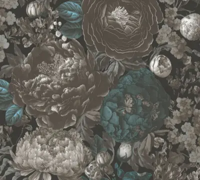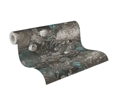 Elegante Vinyltapete 399792 von A.S. Création – Stilvolles florales Design in Schwarz, Grau und Blau