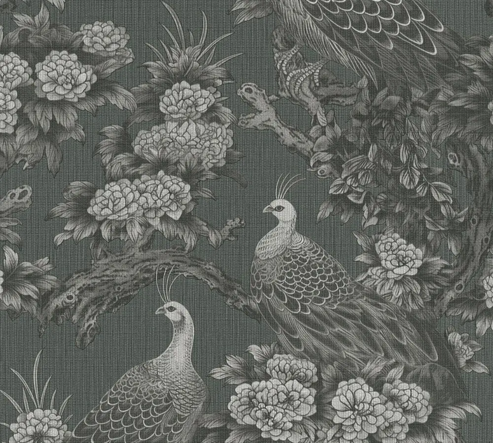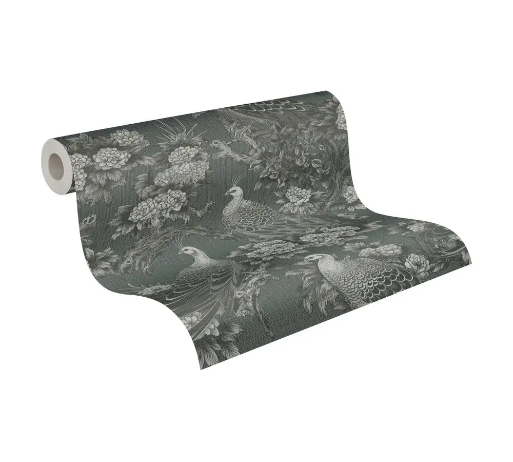 Vinyltapete livingwalls 399821 – Elegante florale Akzente in Grau und Schwarz