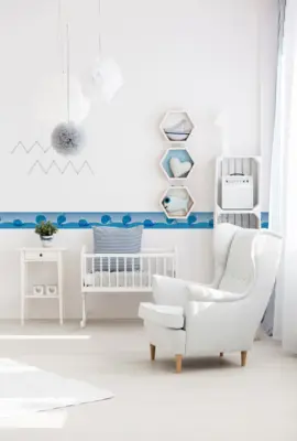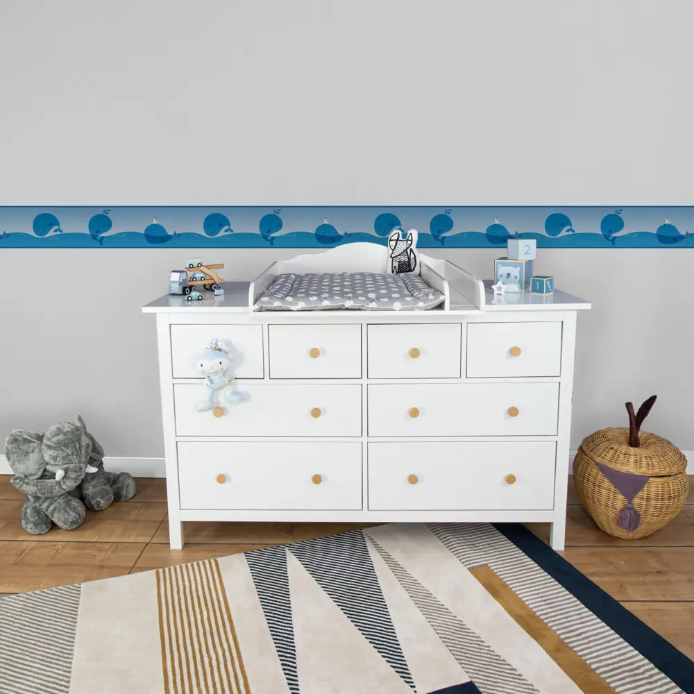 Mit der A.S. Création Bordüre 403721 gestalten Sie Wände im Kinderzimmer schnell und sauber. Das blau-weiße Design setzt einen freundlichen Akzent und passt ideal zu hellen Möbeln sowie klassischen Kinderzimmerfarben. Als selbstklebende Papierbordüre lässt sie sich unkompliziert anbringen und sorgt für ein harmonisches Finish entlang von Wandkanten, über Sockelleisten oder als dekorative Trennlinie.