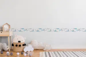 Mit der A.S. Création Bordüre 403723 setzen Sie im Kinderzimmer einen frischen, harmonischen Akzent. Die Farbgestaltung in Weiß, Blau und Grau wirkt freundlich und modern und eignet sich ideal, um Wände zu strukturieren oder Bereiche wie Bett- und Spielecke klar voneinander abzugrenzen.