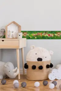Mit der A.S. Création Tapetenbordüre 403725 setzt du lebendige Highlights an Wand und Decke und bringst spielerische Farbe ins Kinderzimmer. Die Bordüre kombiniert frische Grüntöne mit bunten Akzenten in Gelb, Braun und Rot und eignet sich ideal, um Räume zu strukturieren oder einzelne Bereiche dekorativ zu betonen.