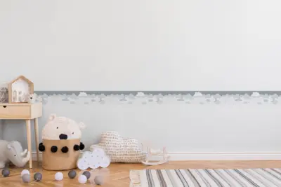 Die Oberfläche ist waschbeständig und gut lichtbeständig, sodass die Farben im Alltag lange ansprechend bleiben. Für spätere Veränderungen lässt sich die Bordüre restlos trocken abziehen – praktisch, wenn sich der Stil im Kinderzimmer mit der Zeit verändert.
