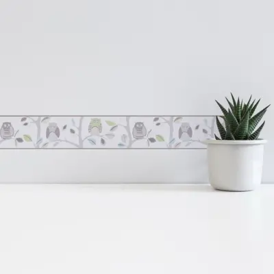 Die Bordüre besteht aus SK Folie mit Papier als Trägermaterial. Die glatte Struktur und die matte Oberflächenoptik schaffen einen ruhigen Look, der sich sehr gut mit unterschiedlichen Tapeten, Wandfarben und kindgerechten Einrichtungsideen kombinieren lässt.