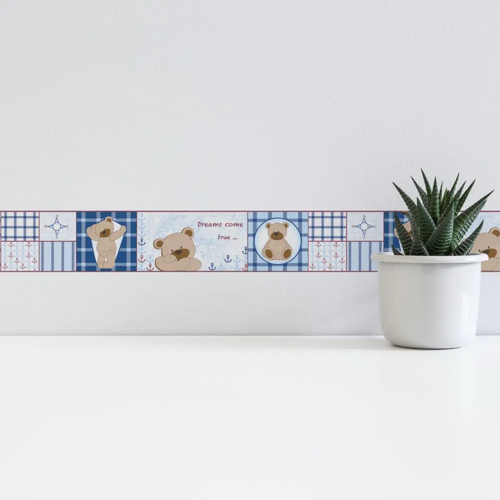 Mit der A.S. Création Tapetenbordüre 898616 gestalten Sie Wände im Kinderzimmer schnell und stilsicher. Die Kombination aus Blau, Braun und roten Akzenten wirkt freundlich und lebendig, während die matte Oberfläche für eine ruhige, angenehme Optik sorgt. Durch die leicht strukturierte Oberfläche erhält die Bordüre zusätzliche Tiefe, ohne aufdringlich zu wirken.