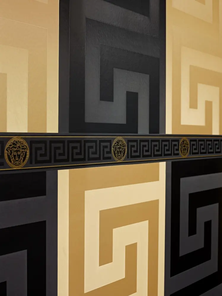 Versace Bordüre 935224 in Schwarz und Gold – stilvoller Akzent für Ihre Wandgestaltung