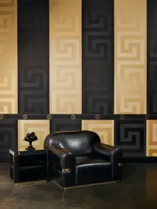 Ob Wohnzimmer, Schlafzimmer oder Büro: Die Bordüre 935224 setzt elegante Akzente und gliedert Wandflächen mit einer klaren, hochwertigen Linie. Besonders in Kombination mit uni gehaltenen Flächen oder zurückhaltenden Mustern entfaltet das Schwarz-Gold-Design seine edle Wirkung.