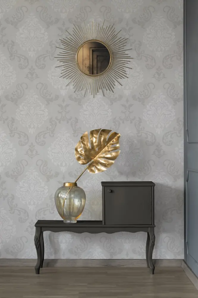 Verleihen Sie Ihren Räumen einen Hauch von klassischer Eleganz mit der Vliestapete 953721 von A.S. Création. Das stilvolle Design in Creme, Silber und Beige überzeugt mit einem anmutigen Barockmuster, das jedem Raum ein exklusives Ambiente verleiht. Die Tapete eignet sich optimal für Wohn- und Schlafzimmer, Küche oder Büro und schafft eine edle, zeitlose Atmosphäre.