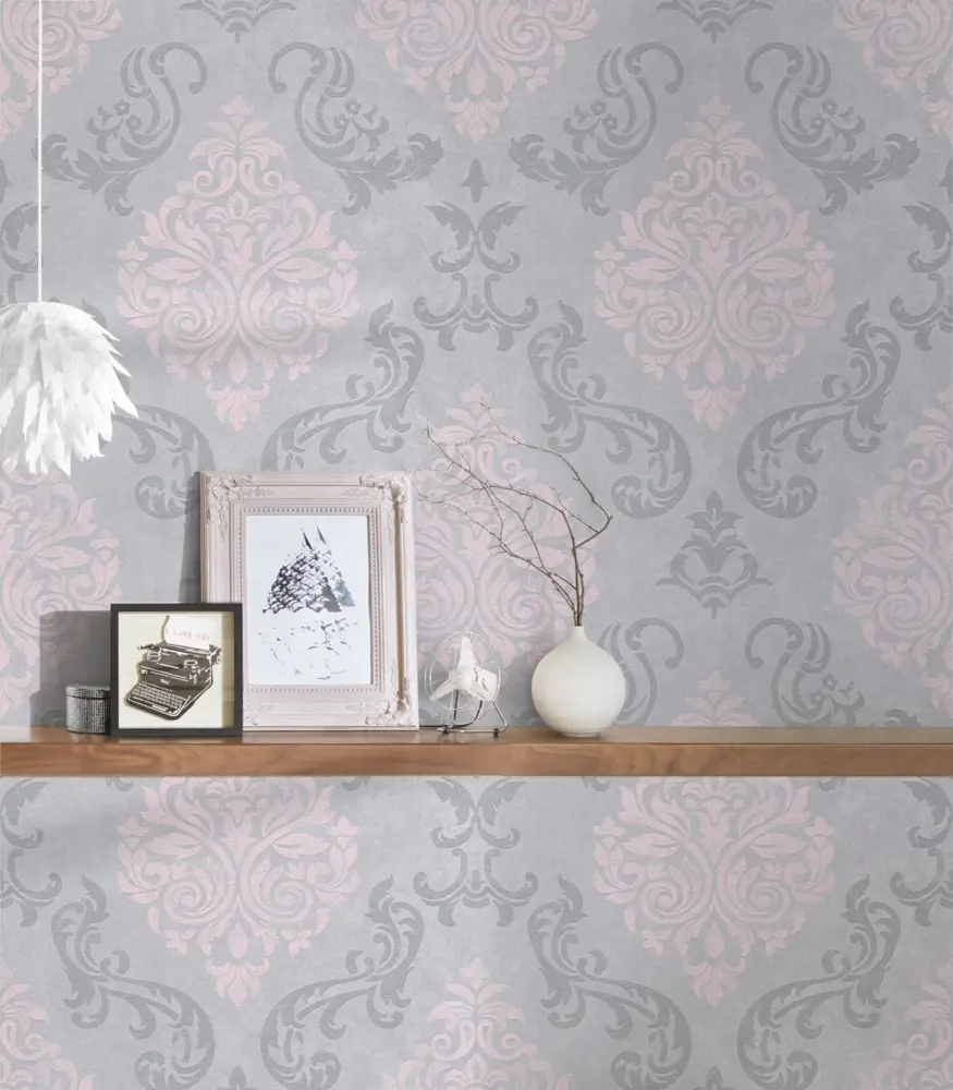 Setzen Sie stilvolle Akzente an Ihren Wänden mit der Vliestapete 953726 von A.S. Création. Das raffinierte Design im klassischen Barock-Stil vereint zarte Rosatöne mit elegantem Grau und schimmerndem Silber zu einem harmonischen Gesamtbild, das jedem Raum eine besondere Note verleiht.