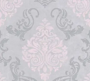 A.S. Création Vliestapete 953726 – Eleganter Barock-Stil in Rosa, Grau und Silber
