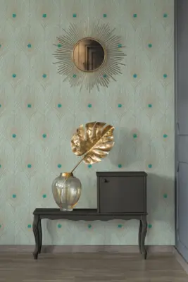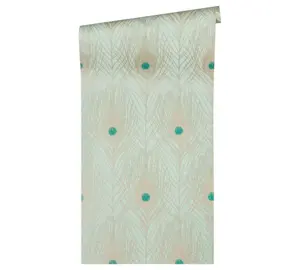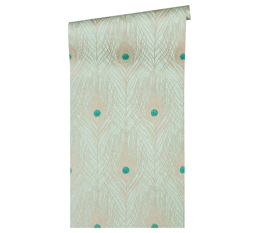 Die Vinyltapete Absolutely Chic 369713 von A.S. Création verleiht jedem Raum eine besondere Note. Das faszinierende Design besticht durch grüne, blaue und goldene Federn, die auf einer glatten, dezent glänzenden Oberfläche angeordnet sind und eine elegante Atmosphäre schaffen. Die Kombination aus hochwertigen Materialien wie Vinyl und Vlies sorgt für Langlebigkeit und eine angenehme Haptik.