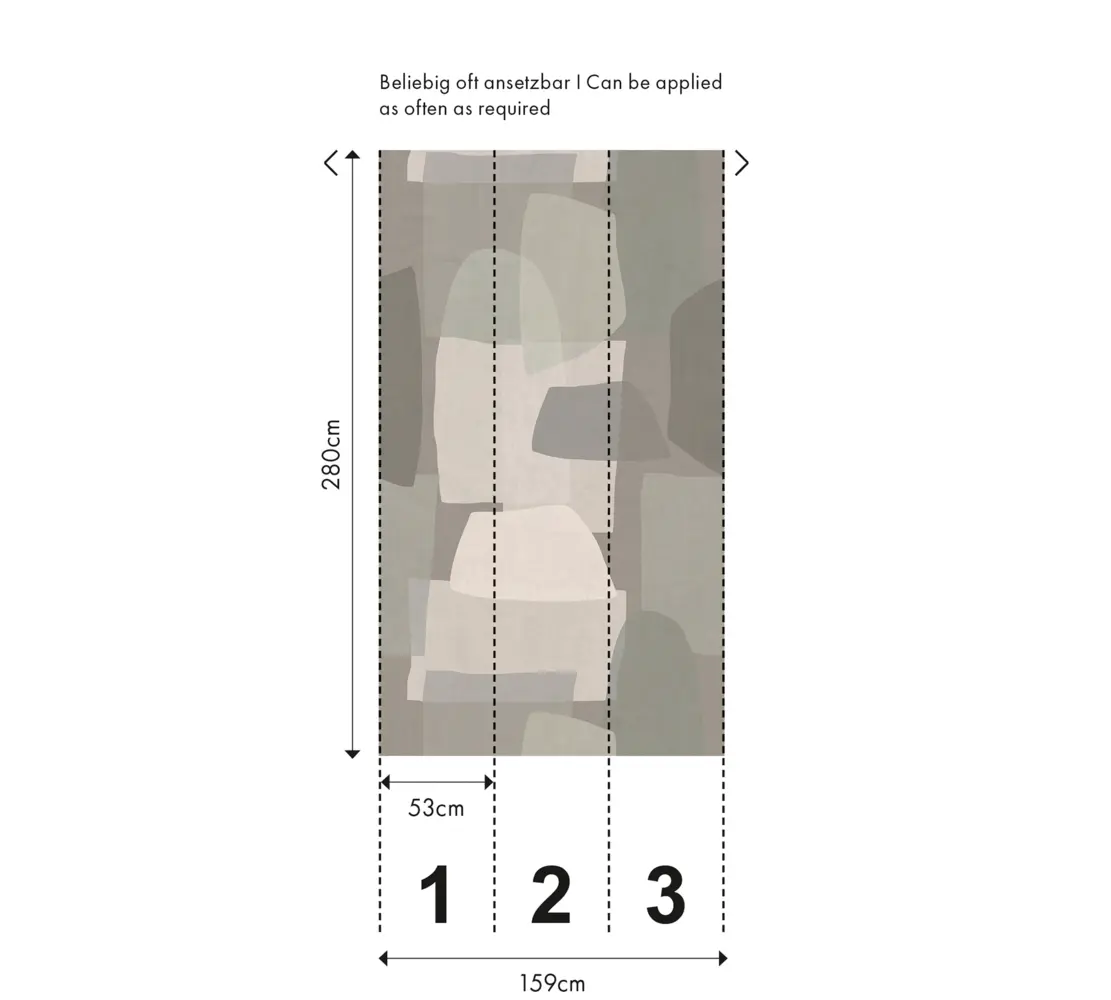 Durch den ansatzfreien Rapport lässt sich das Motiv ohne Musterabgleich verarbeiten – das erleichtert das Tapezieren und sorgt für ein sauberes Gesamtbild. Mit dem Format von 2,80 m x 1,59 m (Breite 1.590 mm) deckt die Tapete großzügig Fläche ab und eignet sich auch für größere Wandbereiche.