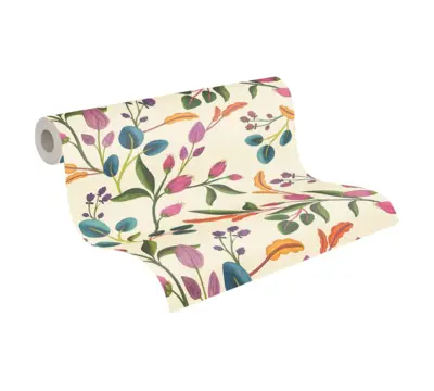 Anna D'Andrea Vliestapete 782111 – florales Design in Creme und Grün