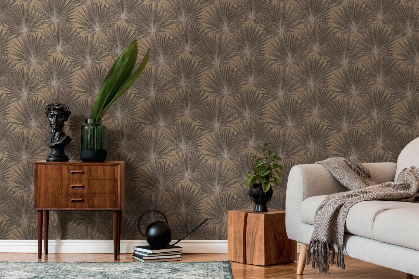 Die A.S. Création Antigua Vinyltapete 390904 verleiht Wohn- und Arbeitsräumen mit ihrem stilvollen Palmen-Design in Braun und Schwarz eine außergewöhnliche Atmosphäre. Die hochwertige Tapete besticht durch ihre leicht glänzende, strukturierte Oberfläche auf Vinylbasis und Vliesträger. Sie ist gut lichtbeständig, scheuerbeständig und lässt sich bei Bedarf restlos trocken abziehen. Mit einer Breite von 53 cm sowie einer Länge von 10,05 m eignet sich diese Vinyltapete ideal für den Einsatz in Wohnzimmer, Schlafzimmer, Küche, Büro und Badezimmer. Das moderne Palmendesign unterstreicht ein exklusives Ambiente und bringt tropisches Flair direkt an Ihre Wand.