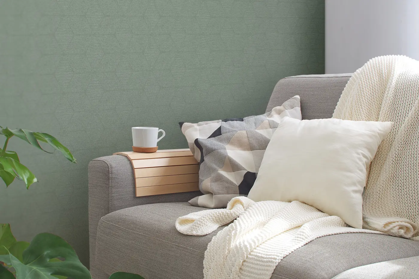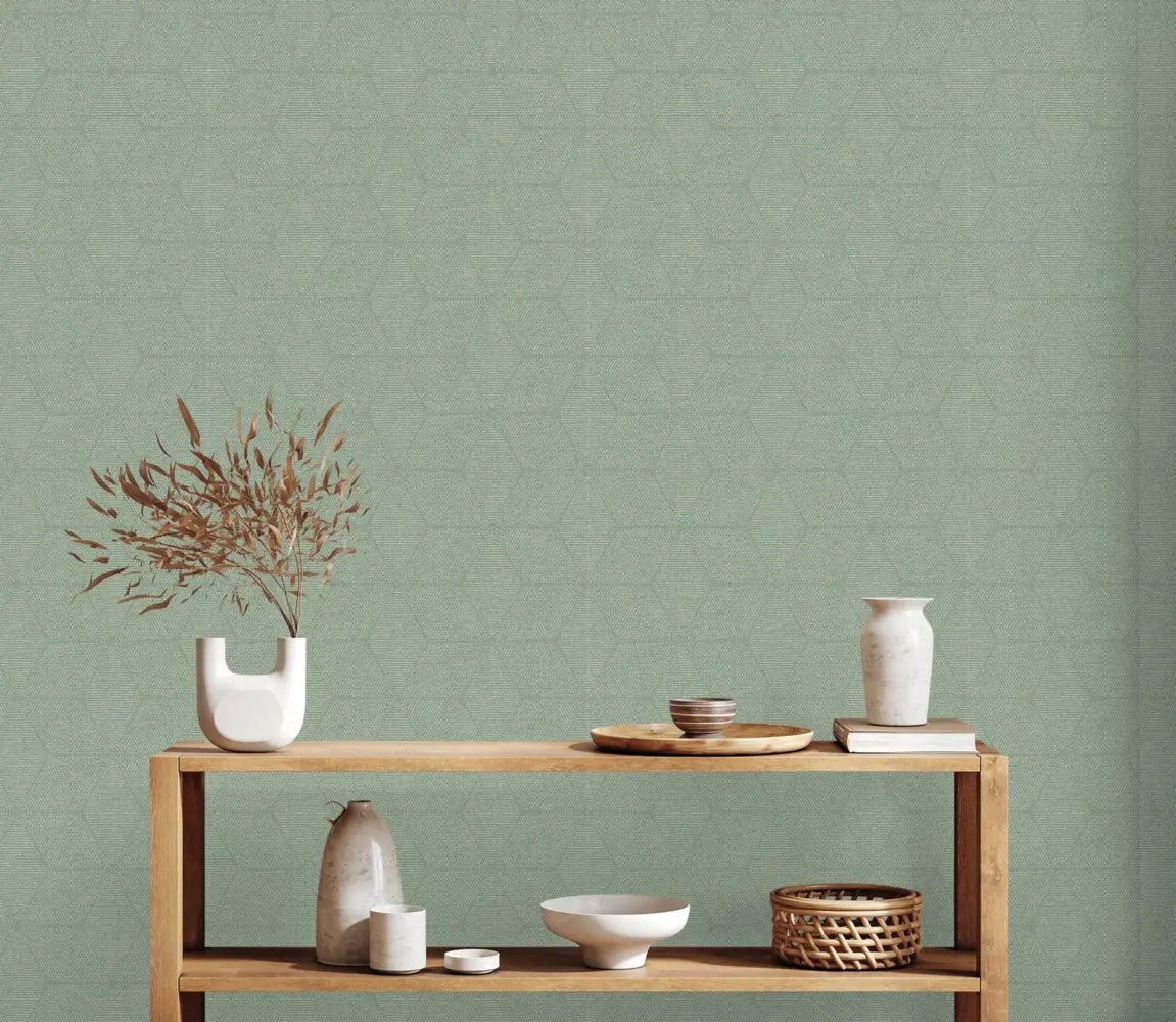 Das grafische Muster mit einem geraden Rapport von 16 cm bringt lebendige Akzente an die Wand, ohne aufdringlich zu wirken. Die Kombination aus Grün und Weiß schafft eine moderne und zugleich behagliche Atmosphäre. Die leicht strukturierte Oberfläche trägt zusätzlich zu einer besonderen Raumwirkung bei.