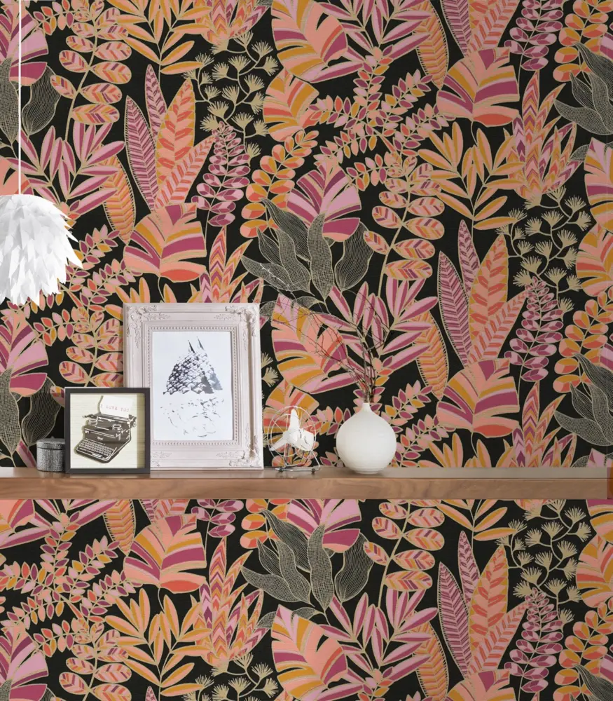 Die Vinyltapete Antigua 390953 von A.S. Création bringt mit ihrem ausdrucksstarken, floralen Design in Schwarz, Pink, Orange, Gold und Violett faszinierende Akzente an Ihre Wände. Die leicht glänzende und dezent strukturierte Oberfläche in Kombination mit einem stilvollen Blumenmuster verleiht jedem Raum eine besondere Note.