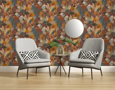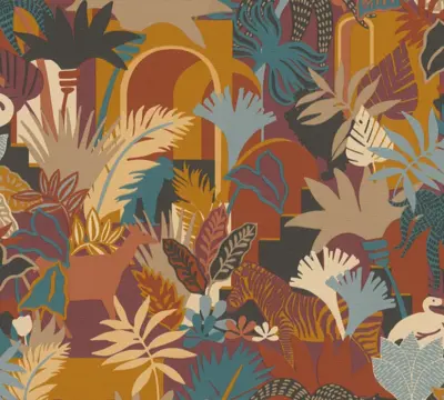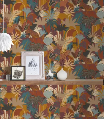Die A.S. Création Antigua Vinyltapete 390961 bringt einen farbenfrohen Dschungel-Flair in Ihre Wohnräume. Mit harmonischen Tönen in Orange, Blau, Gelb und Braun, kombiniert mit einem abwechslungsreichen Muster, erzeugt diese Tapete eine lebendige und einladende Atmosphäre – ob im Wohn- und Schlafzimmer, in der Küche, im Büro oder Badezimmer.