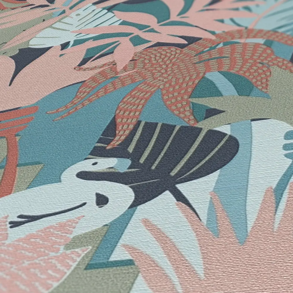 Die A.S. Création Vinyltapete 390963 aus der Kollektion Antigua bringt mit ihrem farbenfrohen, exotischen Muster einen Hauch von Dschungel in Ihr Zuhause. Akzente in Grün, Blau, Orange und Rosa schaffen eine lebendige Atmosphäre und machen diese Tapete zu einem echten Blickfang – perfekt geeignet für Wohnzimmer, Schlafzimmer, Küchen, Badezimmer oder das Büro.