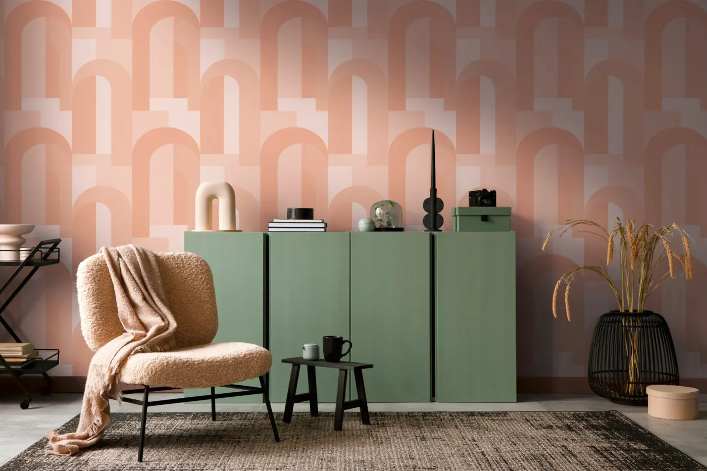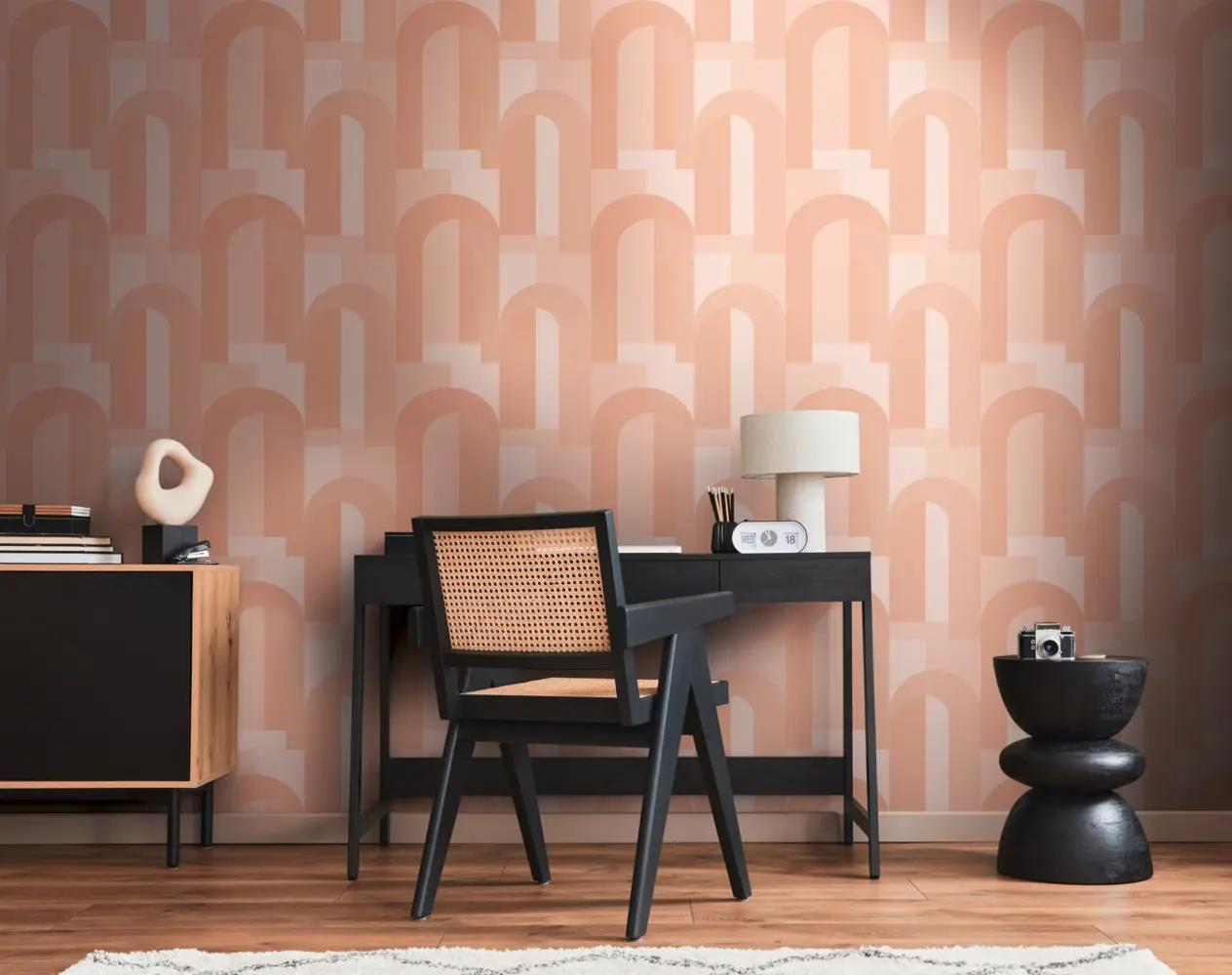 Die Architects Paper Vliestapete 391702 aus der AP Arcade Kollektion von A.S. Création kombiniert moderne Eleganz mit dem zeitlosen Charme des Art Deco. Das raffinierte Grafikdesign in Orange und Beige verleiht jedem Raum ein stilvolles und gleichzeitig warmes Ambiente.