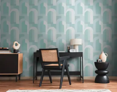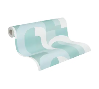Die Vliestapete 391703 aus der AP Arcade Kollektion von A.S. Création begeistert mit ihrem markanten Art Deco Design in Türkis und Weiß. Die grafischen Muster verleihen jedem Raum eine elegante, zeitgemäße Atmosphäre und setzen einzigartige Akzente an der Wand.