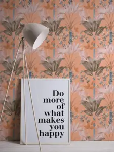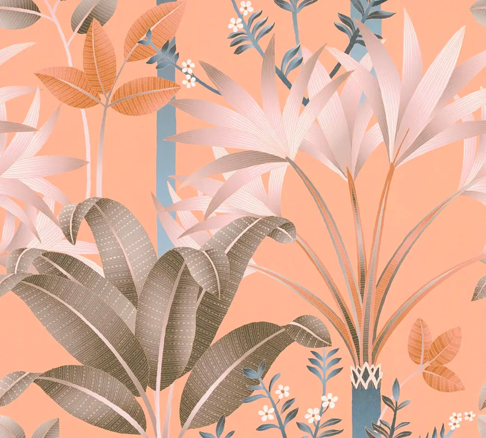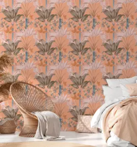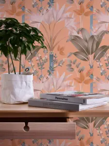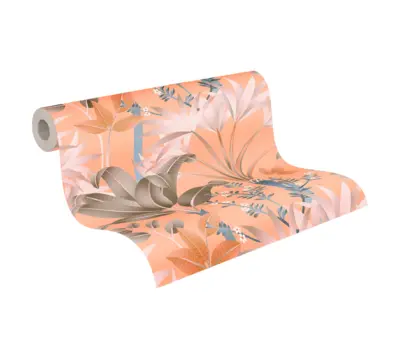 Die Vliestapete aus der Kollektion AP Arcade von A.S. Création beeindruckt mit einem ausdrucksstarken floralen Design in Orange, Blau und Braun. Dank ihrer Kombination aus mattem Finish und glatter Struktur schafft sie ein harmonisches, modernes Ambiente an Wand oder Decke, ideal für unterschiedliche Wohn- und Arbeitsbereiche wie Wohnzimmer, Schlafzimmer, Büro, Küche und Bad.